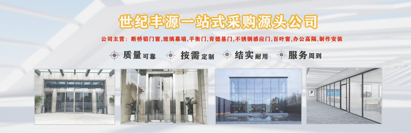 天津世紀豐源門窗有限公司從事斷橋鋁門窗,玻璃幕墻,平衡門,肯德基門,不銹鋼感應門,百葉窗,辦公高隔,制作安裝一站式訂制生產及配套服務等?! 」咀猿闪⒁詠?,始終堅持以人才為本、誠信立業的經營原則,薈萃業界精英,成熟的技術、管理方法及企業經驗與國內企業的具體實際相結合,為企業供給各個方面的解決方案,使企業在激烈的市場競爭中始終堅持競爭力,實現企業快速、穩定地發展?! ≠|量好、服務好、才能信譽好,公司已在諸多領域取得輝煌成績,愿意成為您可信賴的長期合作伙伴。 讓我們攜手同行,共同實現“讓普通老百姓都用得上高端門窗”...